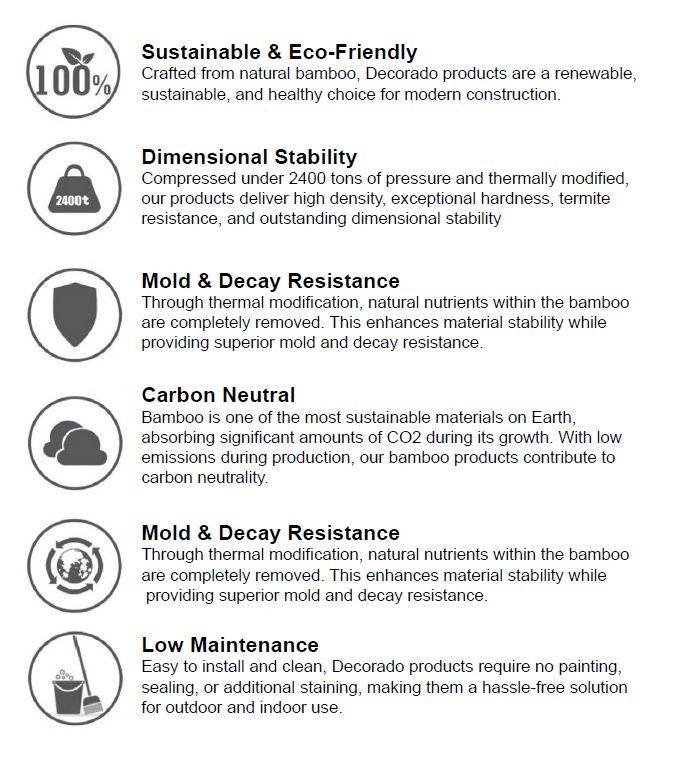 Decorado Bamboo is crafted from 4–6 year-old moso bamboo harvested from sustainably managed forests.